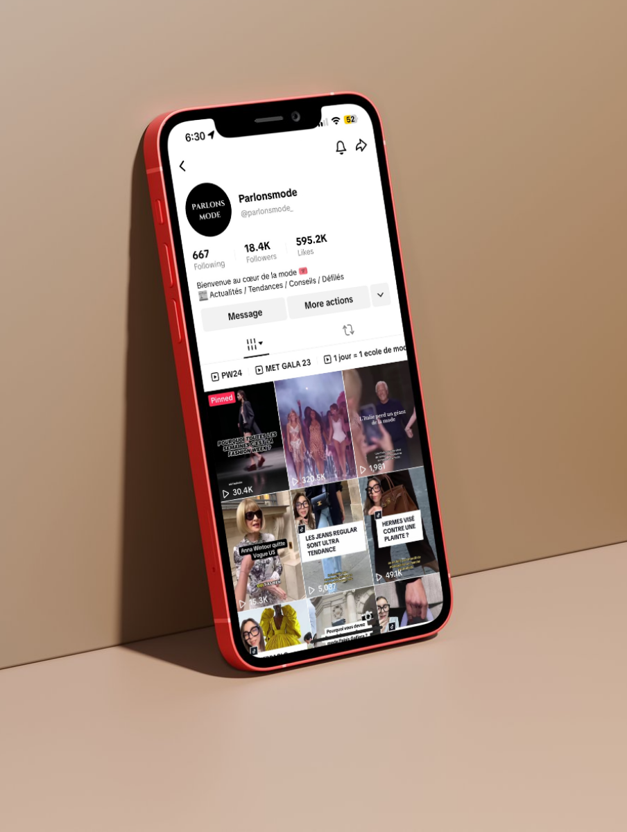 Lancement et structuration de sa présence sur TikTok et Instagram avec une stratégie de contenu dédiée à l’univers de la mode et aux tendances.