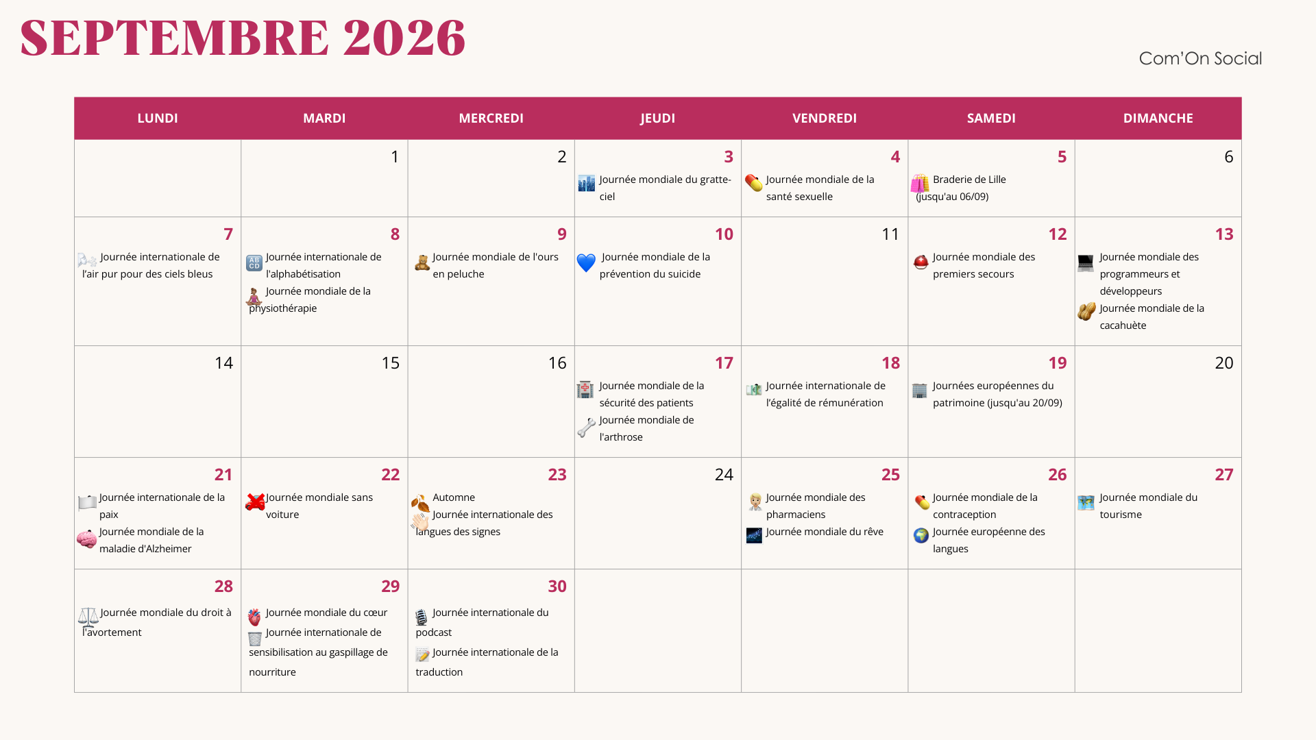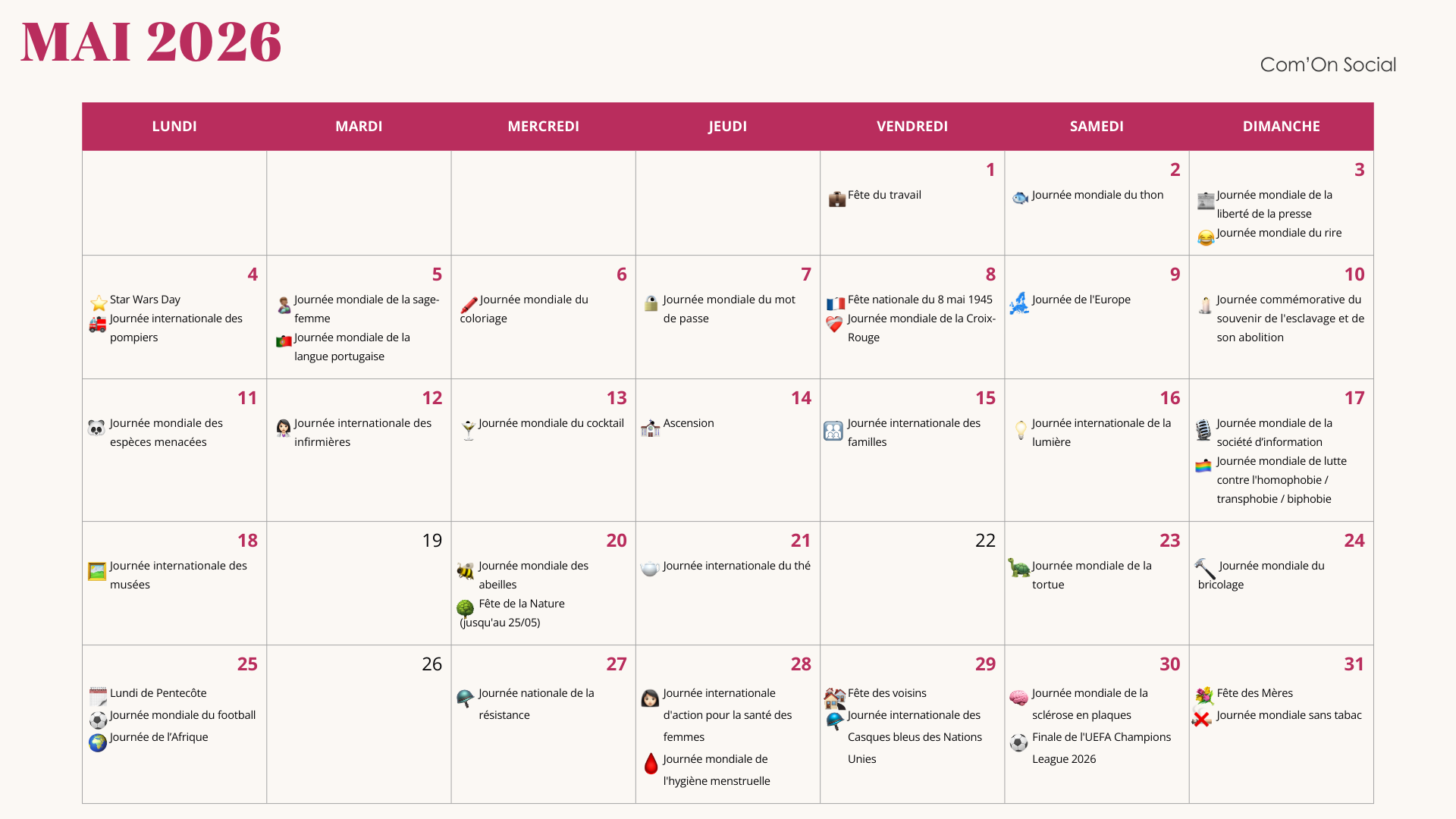 Avoir les dates est une chose, savoir quoi en faire en est une autre. Voici la méthodologie que nous vous conseillons (et que nous appliquons) chez Com’On Social :