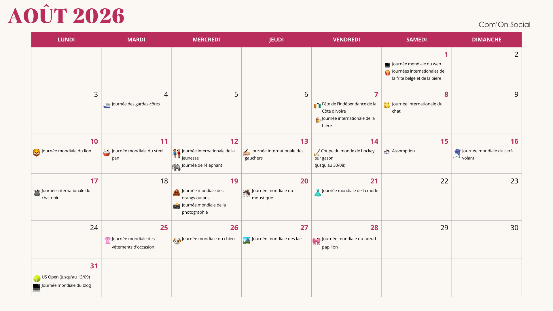 Lister des dates, c'est facile. Construire une stratégie de contenu cohérente, avec un ton juste et des messages percutants qui engagent vraiment votre audience , c'est un autre métier. Chez Com'On Social, nous ne vous donnons pas juste un calendrier. Nous construisons avec vous un planning éditorial sur-mesure, pensé pour votre secteur, votre clientèle et vos objectifs.